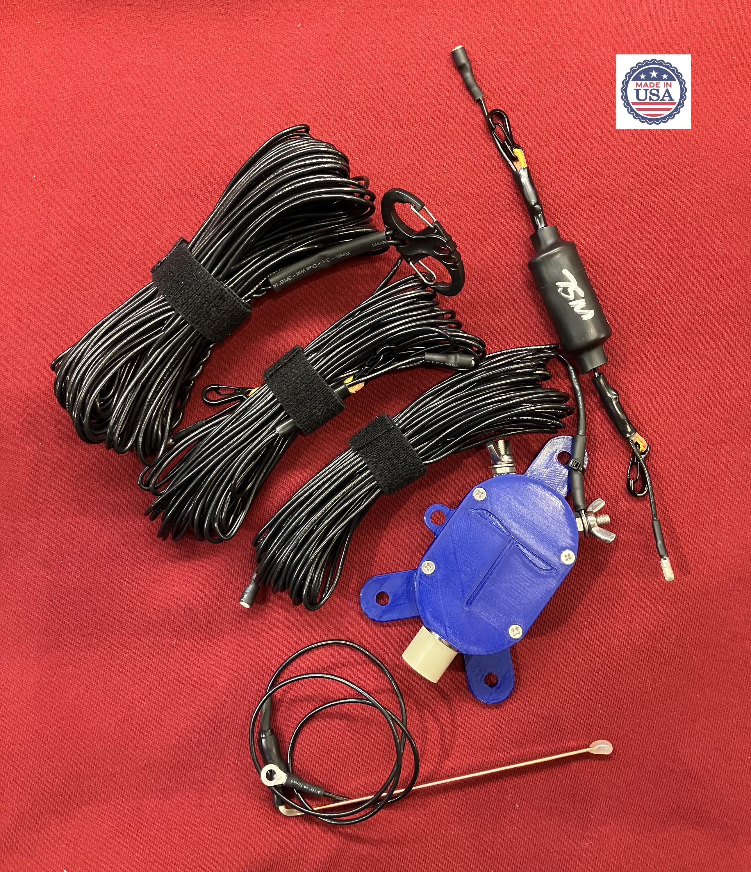 This idea is not new and has been explored many times, versions of which are available on the internet. Working with Philip KA4KOE or “Fleep” as he is called, we were able to optimize this configuration to operate efficiently on these bands, without a tuner, while keeping the antenna lightweight and flexible.